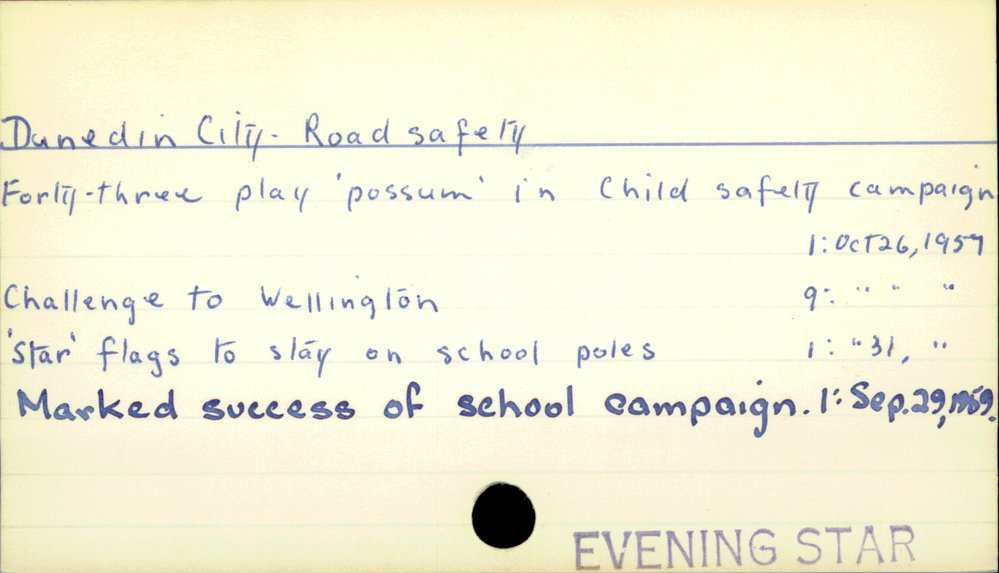 Dunedin Public Libraries (14th Sep 2017). Dunedin City - Road Safety. In Website Dunedin Public Libraries. Retrieved 27th Mar 2026 10:33, from https://dunedin.recollect.co.nz/nodes/view/115330