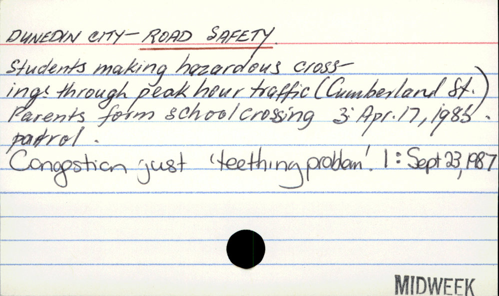 Dunedin Public Libraries (18th Sep 2017). Dunedin City - Road safety. In Website Dunedin Public Libraries. Retrieved 27th Mar 2026 10:28, from https://dunedin.recollect.co.nz/nodes/view/115335