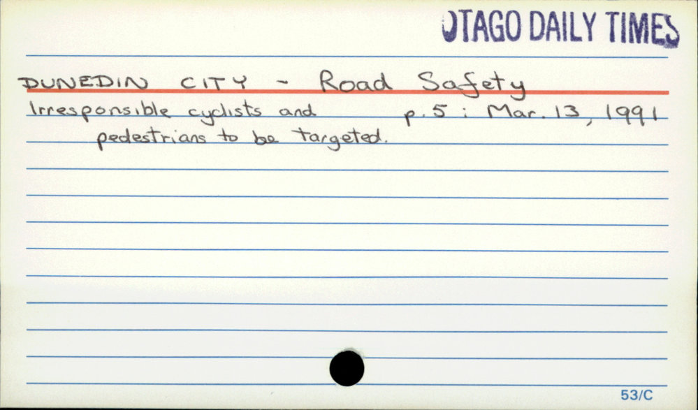 Dunedin Public Libraries (13th Sep 2017). DUNEDIN CITY - Road Safety. In Website Dunedin Public Libraries. Retrieved 27th Mar 2026 10:28, from https://dunedin.recollect.co.nz/nodes/view/115338