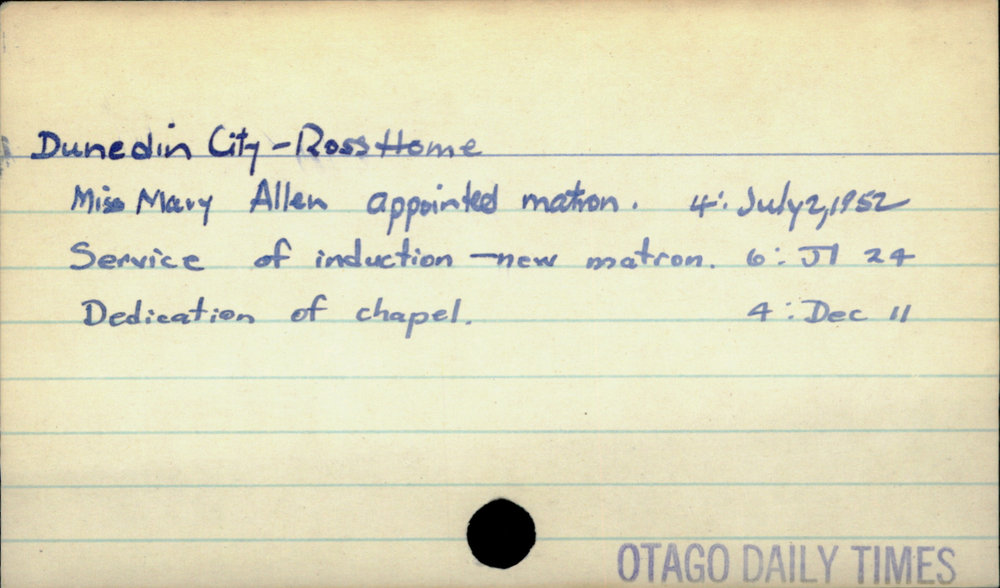 Dunedin Public Libraries (10th Oct 2017). Dunedin City - Ross Home. In Website Dunedin Public Libraries. Retrieved 27th Mar 2026 00:23, from https://dunedin.recollect.co.nz/nodes/view/116229