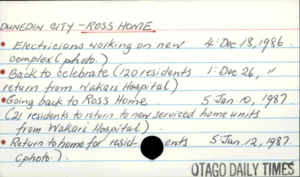 Dunedin Public Libraries (10th Oct 2017). DUNEDIN CITY - ROSS HOME. In Website Dunedin Public Libraries. Retrieved 27th Mar 2026 00:32, from https://dunedin.recollect.co.nz/nodes/view/116243