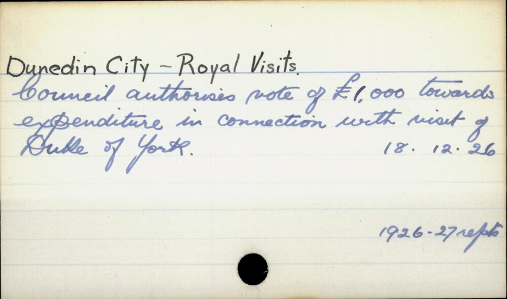 Dunedin Public Libraries (28th Nov 2017). Dunedin City - Royal Visits. In Website Dunedin Public Libraries. Retrieved 27th Mar 2026 13:24, from https://dunedin.recollect.co.nz/nodes/view/116344
