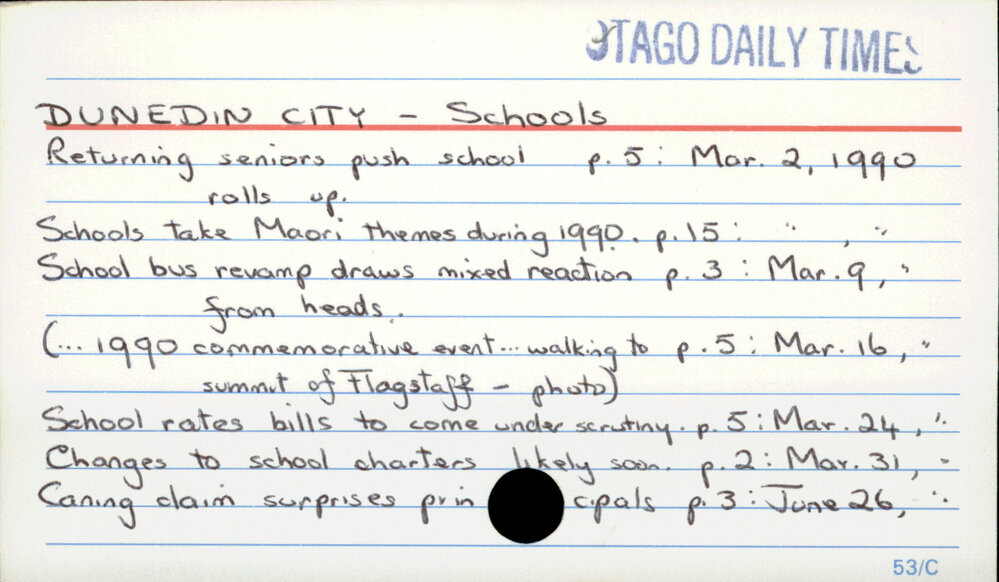 Dunedin Public Libraries (10th Nov 2017). DUNEDIN CITY - Schools. In Website Dunedin Public Libraries. Retrieved 27th Mar 2026 15:08, from https://dunedin.recollect.co.nz/nodes/view/117146