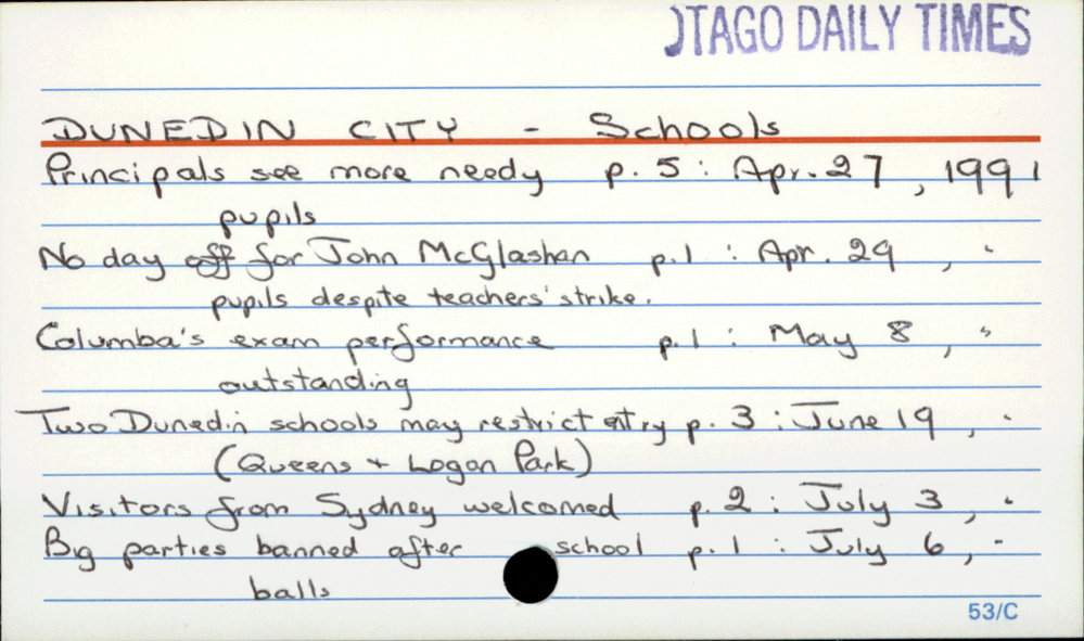 Dunedin Public Libraries (12th Nov 2017). Dunedin City - Schools. In Website Dunedin Public Libraries. Retrieved 27th Mar 2026 15:07, from https://dunedin.recollect.co.nz/nodes/view/117150
