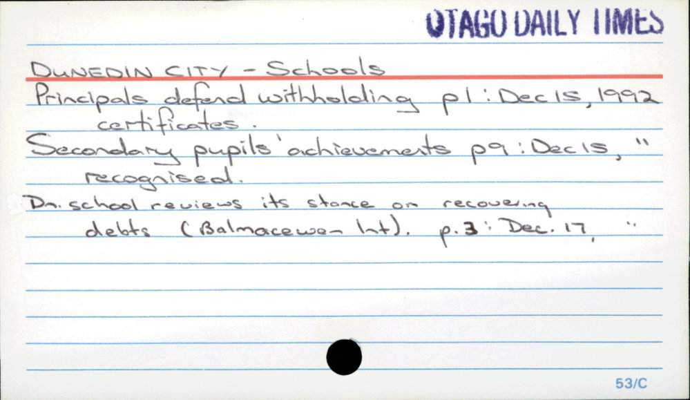 Dunedin Public Libraries (10th Nov 2017). Dunedin City - Schools. In Website Dunedin Public Libraries. Retrieved 27th Mar 2026 15:07, from https://dunedin.recollect.co.nz/nodes/view/117156