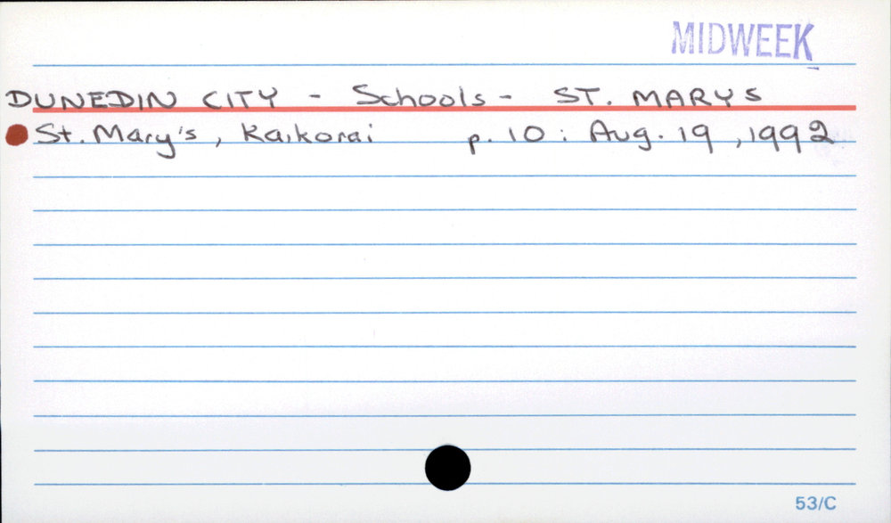 Dunedin Public Libraries (11th Jan 2018). Dunedin City - Schools - St Mary's School (Kaikorai). In Website Dunedin Public Libraries. Retrieved 2nd Apr 2026 12:27, from https://dunedin.recollect.co.nz/nodes/view/118736