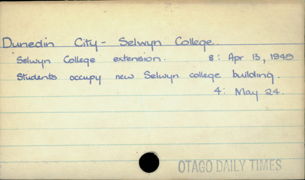 Dunedin Public Libraries (3rd Jan 2018). Dunedin City - Selwyn College. In Website Dunedin Public Libraries. Retrieved 2nd Apr 2026 14:11, from https://dunedin.recollect.co.nz/nodes/view/118982