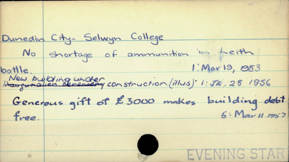 Dunedin Public Libraries (3rd Jan 2018). Dunedin City - Selwyn College. In Website Dunedin Public Libraries. Retrieved 2nd Apr 2026 14:12, from https://dunedin.recollect.co.nz/nodes/view/118986