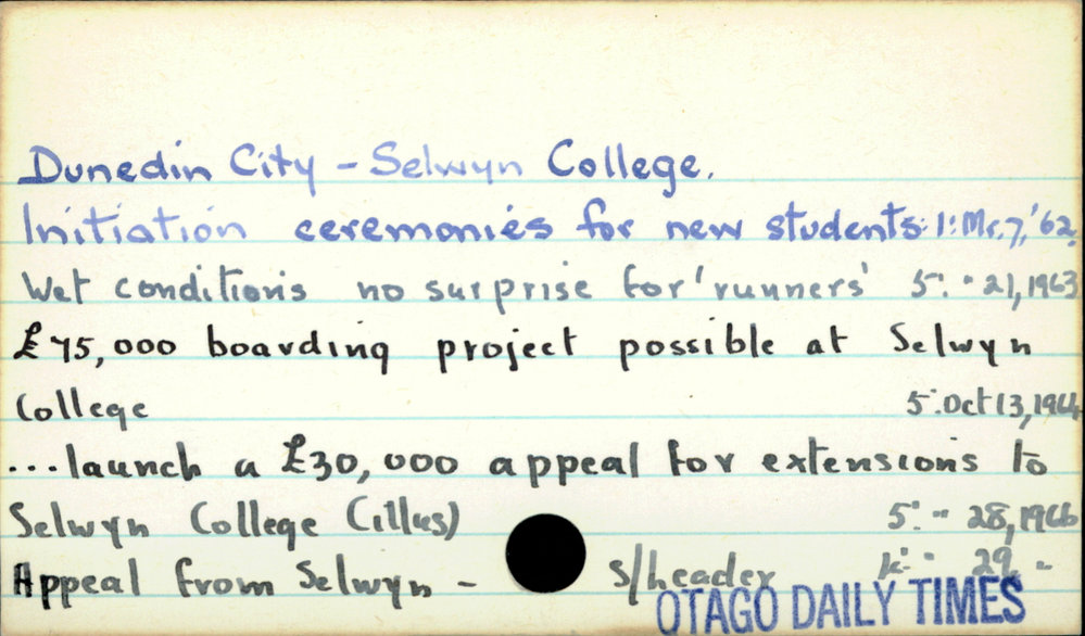 Dunedin Public Libraries (3rd Jan 2018). Dunedin City - Selwyn College. In Website Dunedin Public Libraries. Retrieved 2nd Apr 2026 14:16, from https://dunedin.recollect.co.nz/nodes/view/118990