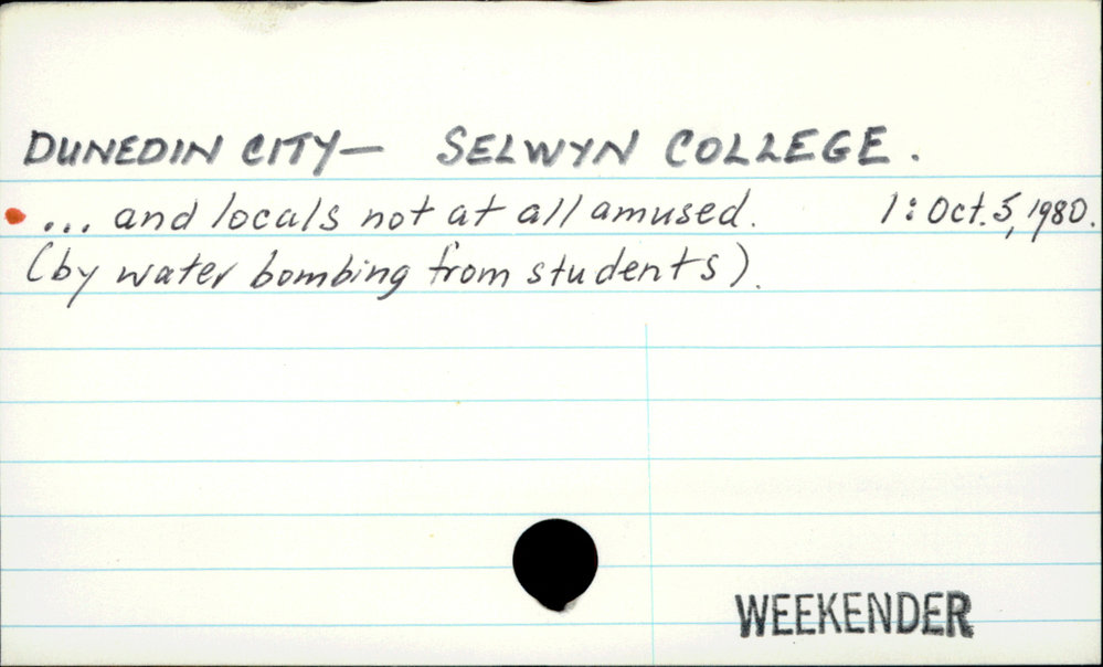 Dunedin Public Libraries (4th Jan 2018). DUNEDIN CITY - SELWYN COLLEGE. In Website Dunedin Public Libraries. Retrieved 2nd Apr 2026 14:12, from https://dunedin.recollect.co.nz/nodes/view/118996
