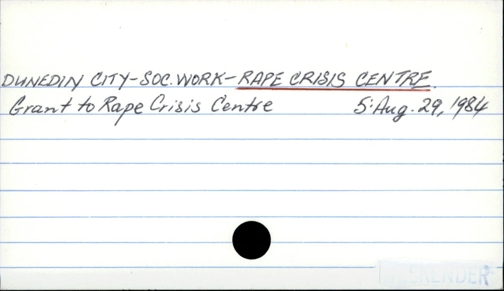 Dunedin Public Libraries (11th Dec 2017). Dunedin City - Social work - Rape Crisis Centre. In Website Dunedin Public Libraries. Retrieved 2nd Apr 2026 15:47, from https://dunedin.recollect.co.nz/nodes/view/119895