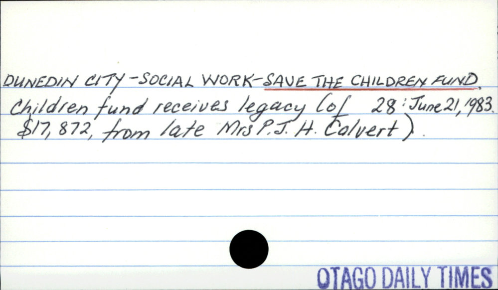 Dunedin Public Libraries (21st Jan 2018). Dunedin City - Social Work - Save The Children Fund. In Website Dunedin Public Libraries. Retrieved 27th Mar 2026 10:37, from https://dunedin.recollect.co.nz/nodes/view/119904
