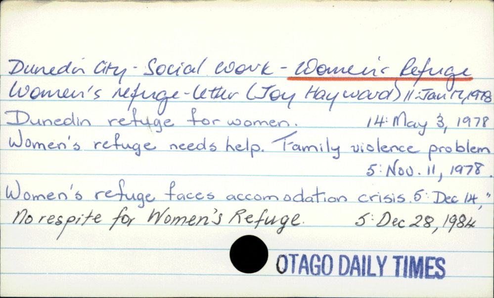 Dunedin Public Libraries (24th Jan 2018). Dunedin City - Social Work - Women's Refuge. In Website Dunedin Public Libraries. Retrieved 27th Mar 2026 10:35, from https://dunedin.recollect.co.nz/nodes/view/119916