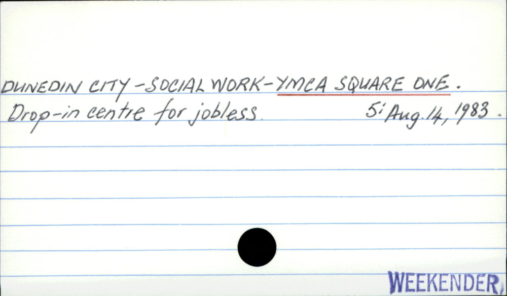 Dunedin Public Libraries (21st Jan 2018). Dunedin City - Social Work - YMCA Square One. In Website Dunedin Public Libraries. Retrieved 27th Mar 2026 10:37, from https://dunedin.recollect.co.nz/nodes/view/119920