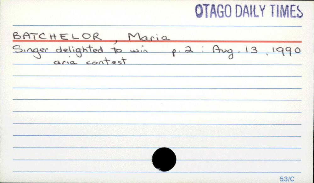 Dunedin Public Libraries (19th Nov 2018). Batchelor, Maria. In Website Dunedin Public Libraries. Retrieved 2nd Apr 2026 17:46, from https://dunedin.recollect.co.nz/nodes/view/12027
