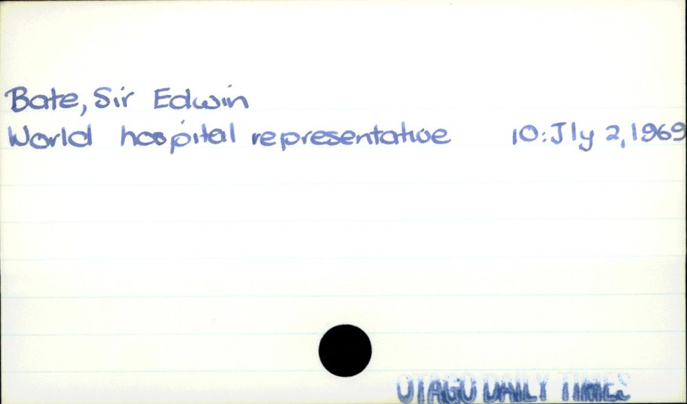Dunedin Public Libraries (19th Nov 2018). Bate, Sir Edwin. In Website Dunedin Public Libraries. Retrieved 2nd Apr 2026 17:46, from https://dunedin.recollect.co.nz/nodes/view/12037