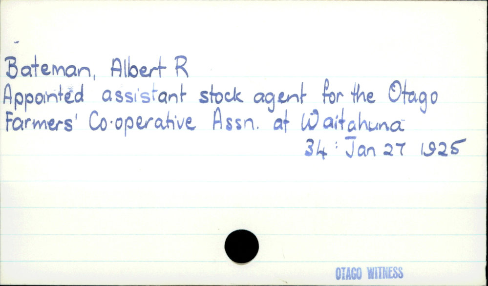 Dunedin Public Libraries (19th Nov 2018). Bateman, Albert R. In Website Dunedin Public Libraries. Retrieved 2nd Apr 2026 17:46, from https://dunedin.recollect.co.nz/nodes/view/12040