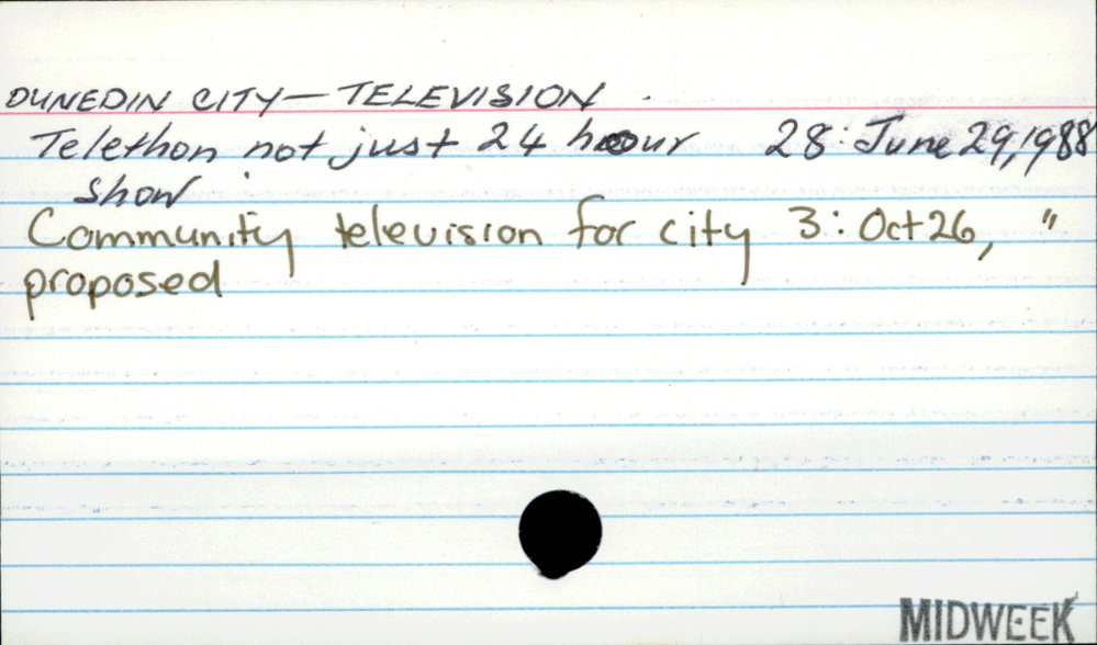 Dunedin Public Libraries (11th Feb 2018). DUNEDIN CITY - TELEVISION . In Website Dunedin Public Libraries. Retrieved 27th Mar 2026 10:49, from https://dunedin.recollect.co.nz/nodes/view/120820
