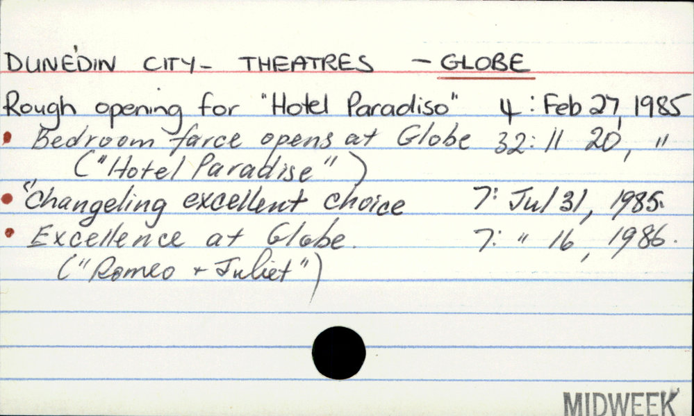 Dunedin Public Libraries (9th Mar 2018). Dunedin City - Theatres - Globe. In Website Dunedin Public Libraries. Retrieved 27th Mar 2026 10:28, from https://dunedin.recollect.co.nz/nodes/view/121691