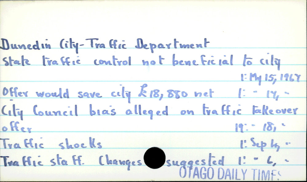 Dunedin Public Libraries (17th Mar 2018). Dunedin City - Traffic Department. In Website Dunedin Public Libraries. Retrieved 27th Mar 2026 15:08, from https://dunedin.recollect.co.nz/nodes/view/122621