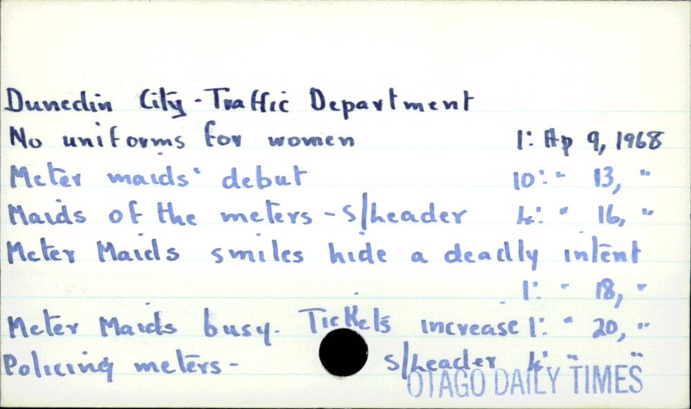 Dunedin Public Libraries (17th Mar 2018). Dunedin City - Traffic Department . In Website Dunedin Public Libraries. Retrieved 27th Mar 2026 15:07, from https://dunedin.recollect.co.nz/nodes/view/122623