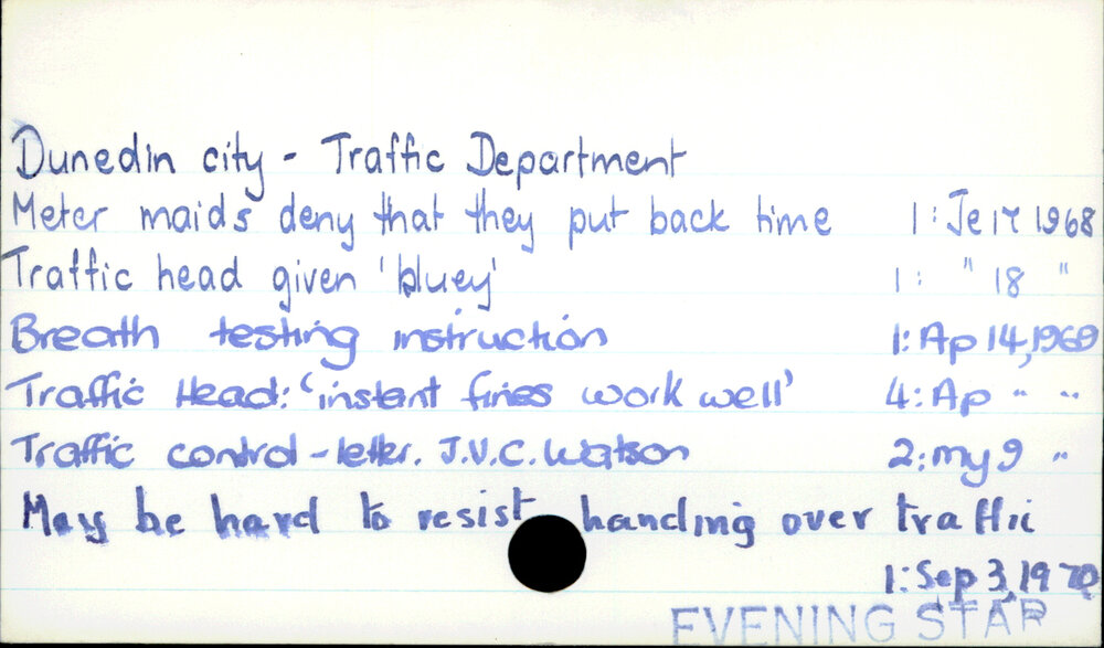 Dunedin Public Libraries (17th Mar 2018). Dunedin City - Traffic Department . In Website Dunedin Public Libraries. Retrieved 27th Mar 2026 15:07, from https://dunedin.recollect.co.nz/nodes/view/122624