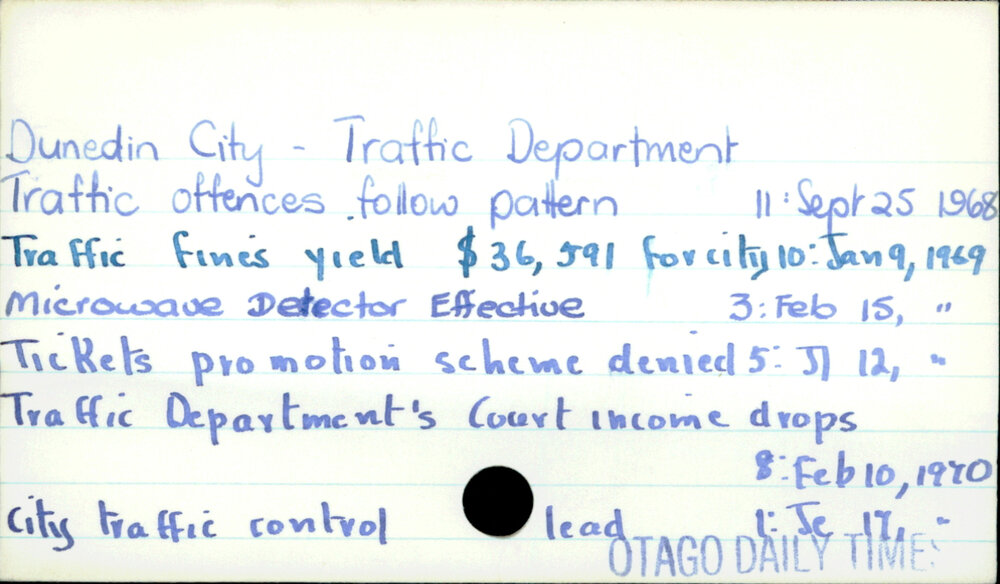 Dunedin Public Libraries (17th Mar 2018). Dunedin City - Traffic Department . In Website Dunedin Public Libraries. Retrieved 27th Mar 2026 15:08, from https://dunedin.recollect.co.nz/nodes/view/122625