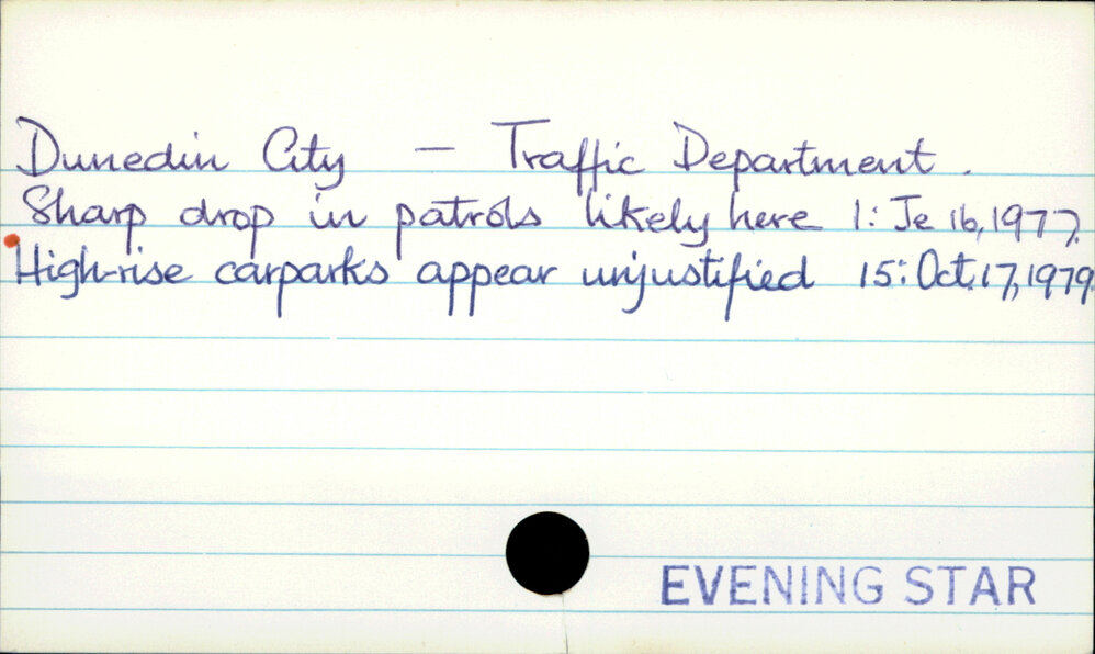 Dunedin Public Libraries (17th Mar 2018). Dunedin City - Traffic Department . In Website Dunedin Public Libraries. Retrieved 27th Mar 2026 15:07, from https://dunedin.recollect.co.nz/nodes/view/122634