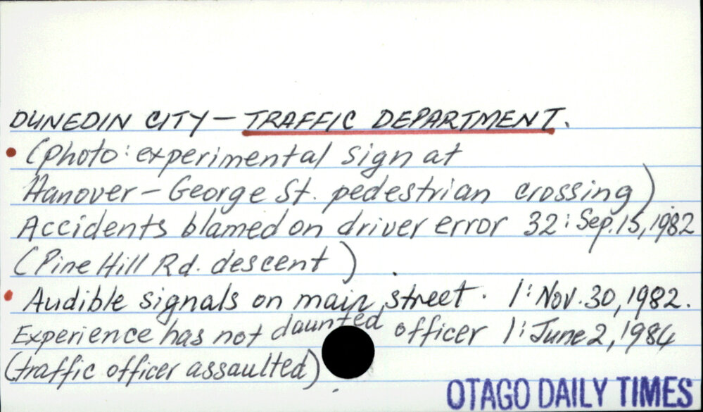Dunedin Public Libraries (12th Feb 2018). Dunedin City - Traffic Department. In Website Dunedin Public Libraries. Retrieved 27th Mar 2026 15:07, from https://dunedin.recollect.co.nz/nodes/view/122636