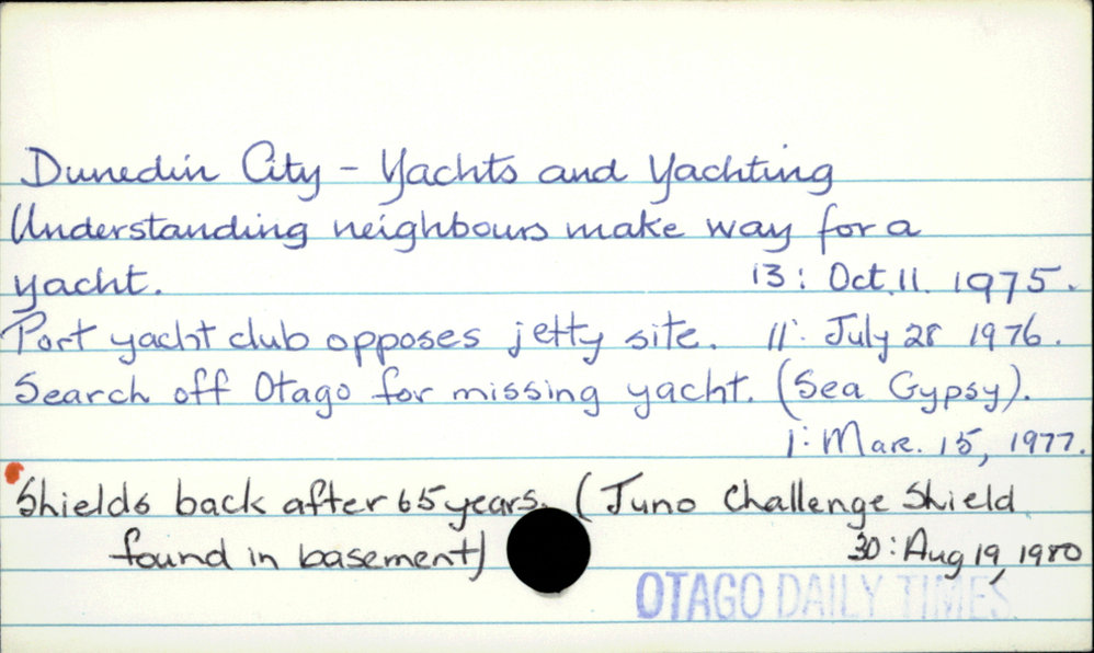 Dunedin Public Libraries (18th Apr 2018). Dunedin City - Yachts and Yachting . In Website Dunedin Public Libraries. Retrieved 27th Mar 2026 10:34, from https://dunedin.recollect.co.nz/nodes/view/124405