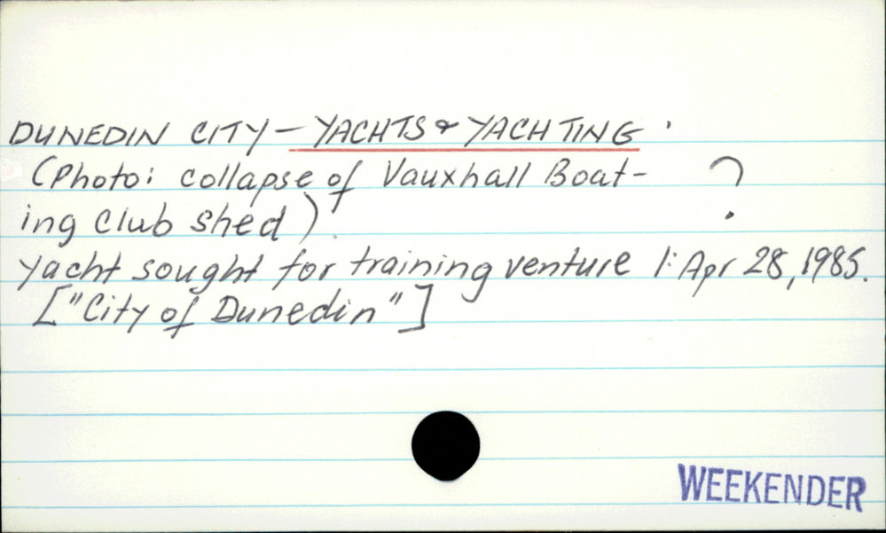 Dunedin Public Libraries (29th Mar 2018). DUNEDIN CITY - YACHTS & YACHTING. In Website Dunedin Public Libraries. Retrieved 27th Mar 2026 10:34, from https://dunedin.recollect.co.nz/nodes/view/124407