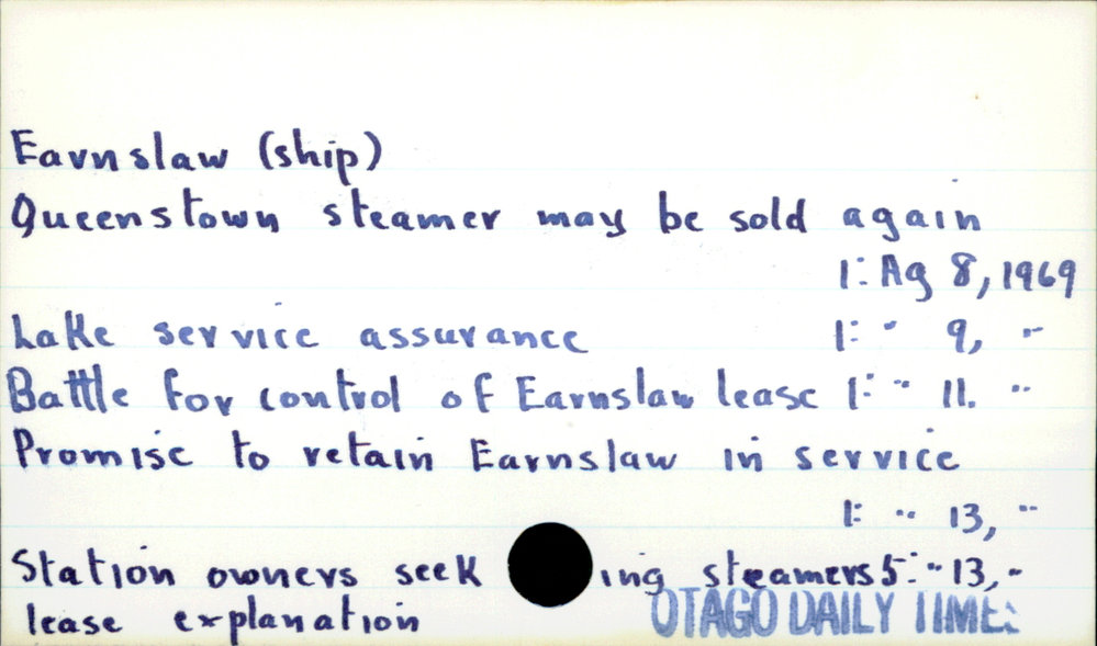 Dunedin Public Libraries (3rd May 2018). Earnslaw (ship). In Website Dunedin Public Libraries. Retrieved 27th Mar 2026 14:16, from https://dunedin.recollect.co.nz/nodes/view/125351