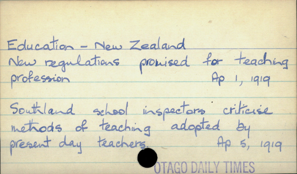 Dunedin Public Libraries (21st Sep 2019). Education - New Zealand. In Website Dunedin Public Libraries. Retrieved 27th Mar 2026 10:49, from https://dunedin.recollect.co.nz/nodes/view/126284