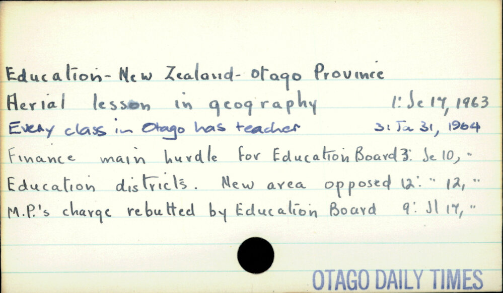 Dunedin Public Libraries (3rd Oct 2019). Education - New Zealand - Otago Province. In Website Dunedin Public Libraries. Retrieved 27th Mar 2026 18:11, from https://dunedin.recollect.co.nz/nodes/view/127234