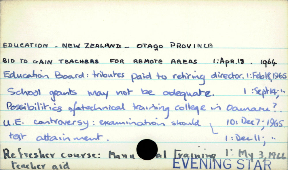 Dunedin Public Libraries (3rd Oct 2019). Education - New Zealand - Otago Province. In Website Dunedin Public Libraries. Retrieved 27th Mar 2026 18:12, from https://dunedin.recollect.co.nz/nodes/view/127237