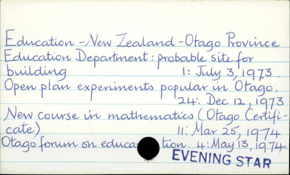 Dunedin Public Libraries (4th Oct 2019). Education - New Zealand - Otago Province. In Website Dunedin Public Libraries. Retrieved 27th Mar 2026 18:12, from https://dunedin.recollect.co.nz/nodes/view/127246