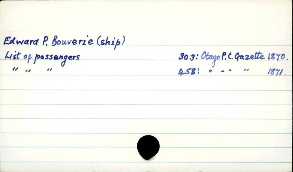 Dunedin Public Libraries (17th Oct 2019). Edward P. Bouverie (ship). In Website Dunedin Public Libraries. Retrieved 27th Mar 2026 12:16, from https://dunedin.recollect.co.nz/nodes/view/127333
