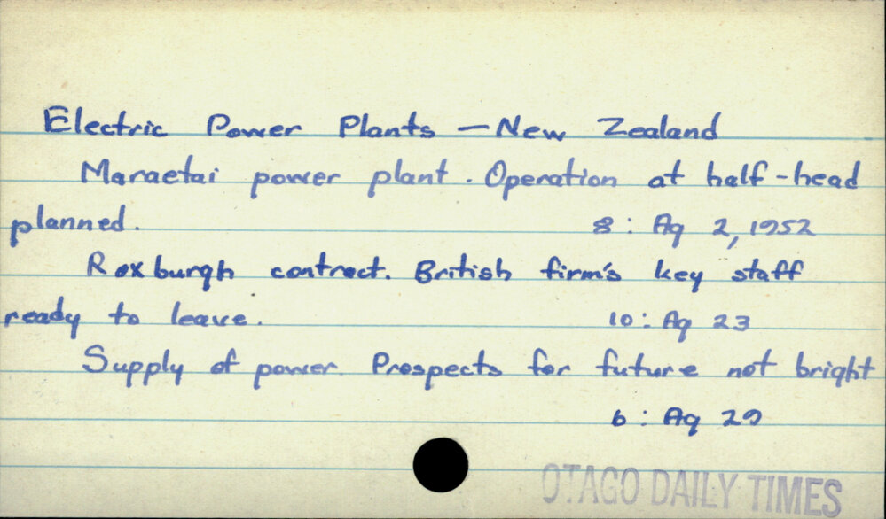 Dunedin Public Libraries (14th Oct 2019). Electric Power Plants - New Zealand. In Website Dunedin Public Libraries. Retrieved 27th Mar 2026 14:19, from https://dunedin.recollect.co.nz/nodes/view/128119