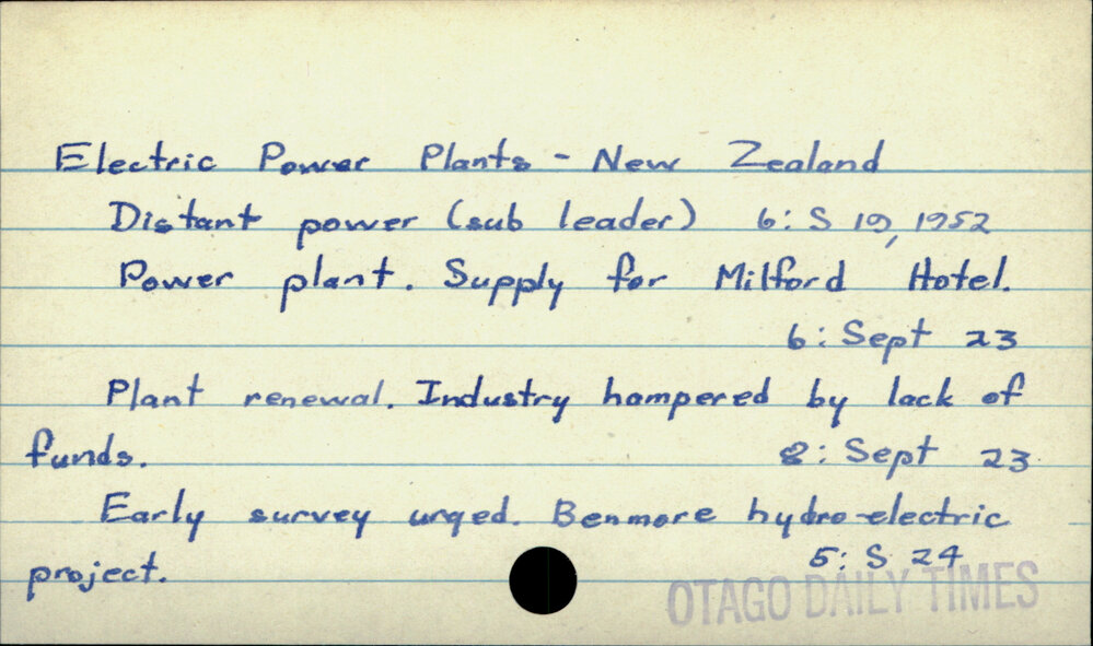 Dunedin Public Libraries (14th Oct 2019). Electric Power Plants - New Zealand. In Website Dunedin Public Libraries. Retrieved 27th Mar 2026 14:16, from https://dunedin.recollect.co.nz/nodes/view/128122