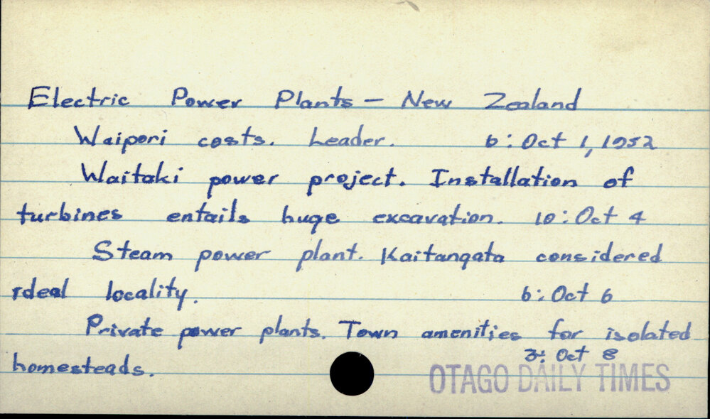 Dunedin Public Libraries (14th Oct 2019). Electric Power Plants - New Zealand. In Website Dunedin Public Libraries. Retrieved 27th Mar 2026 14:16, from https://dunedin.recollect.co.nz/nodes/view/128124
