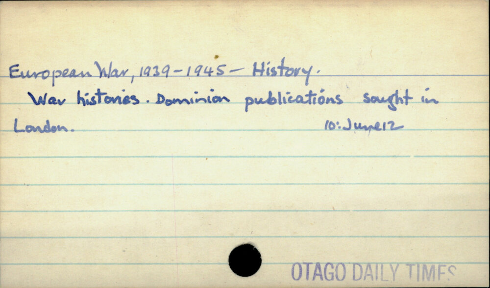 Dunedin Public Libraries (10th Nov 2019). European War, 1939- 1945 - History. In Website Dunedin Public Libraries. Retrieved 27th Mar 2026 10:34, from https://dunedin.recollect.co.nz/nodes/view/129759
