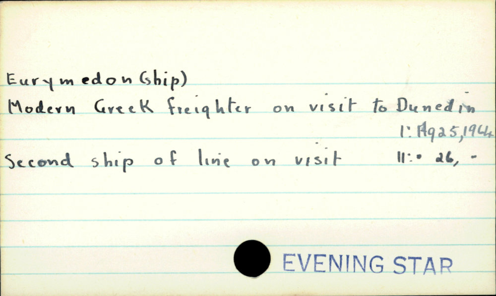 Dunedin Public Libraries (6th Nov 2019). Eurymedon (ship). In Website Dunedin Public Libraries. Retrieved 27th Mar 2026 10:28, from https://dunedin.recollect.co.nz/nodes/view/129768