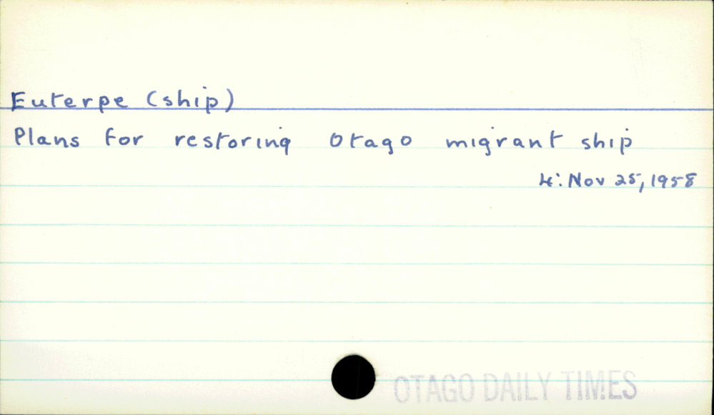 Dunedin Public Libraries (6th Nov 2019). Euterpe (Ship). In Website Dunedin Public Libraries. Retrieved 27th Mar 2026 10:37, from https://dunedin.recollect.co.nz/nodes/view/129777