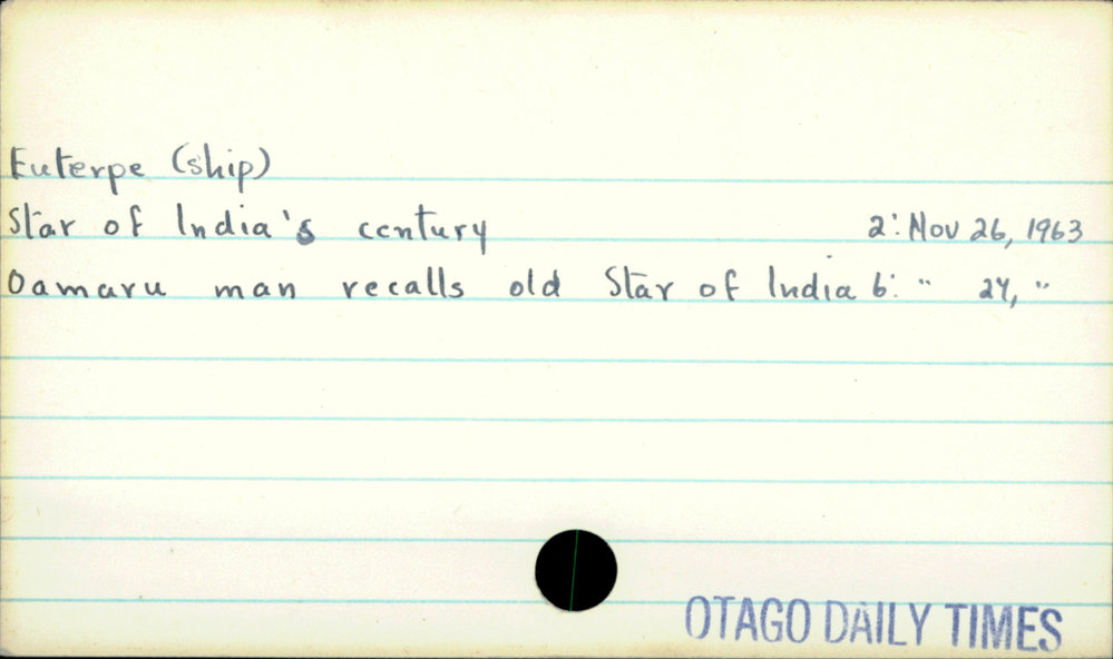 Dunedin Public Libraries (6th Nov 2019). Euterpe (ship). In Website Dunedin Public Libraries. Retrieved 27th Mar 2026 10:34, from https://dunedin.recollect.co.nz/nodes/view/129778