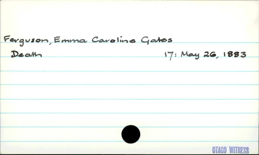 Dunedin Public Libraries (28th Nov 2019). Ferguson, Emma Caroline Gates. In Website Dunedin Public Libraries. Retrieved 27th Mar 2026 10:53, from https://dunedin.recollect.co.nz/nodes/view/131511
