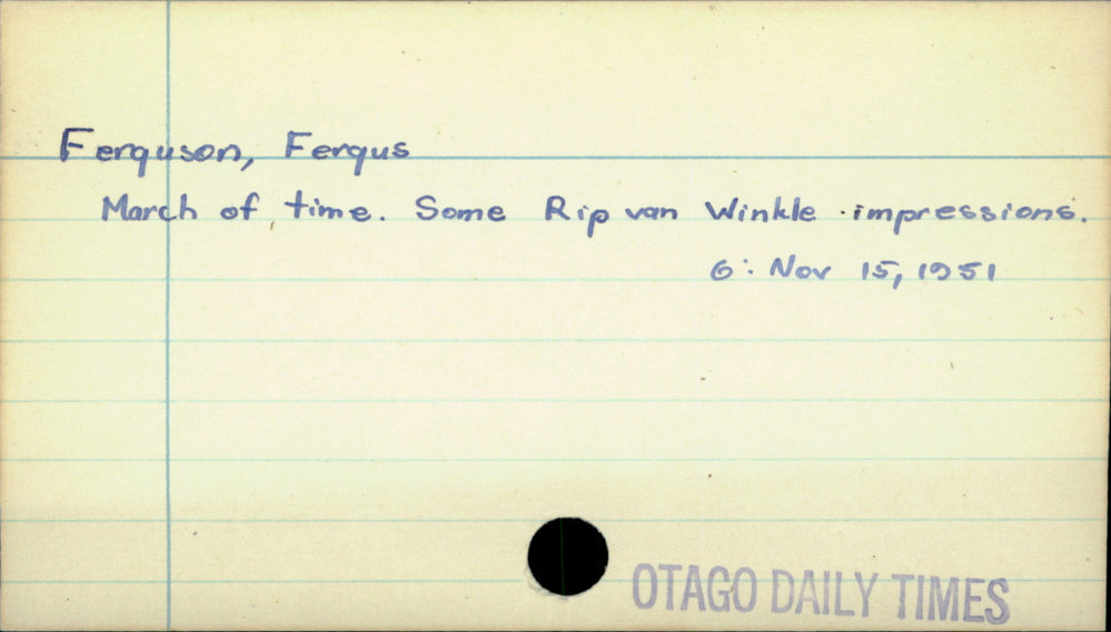 Dunedin Public Libraries (28th Nov 2019). Ferguson, Fergus. In Website Dunedin Public Libraries. Retrieved 27th Mar 2026 10:56, from https://dunedin.recollect.co.nz/nodes/view/131513
