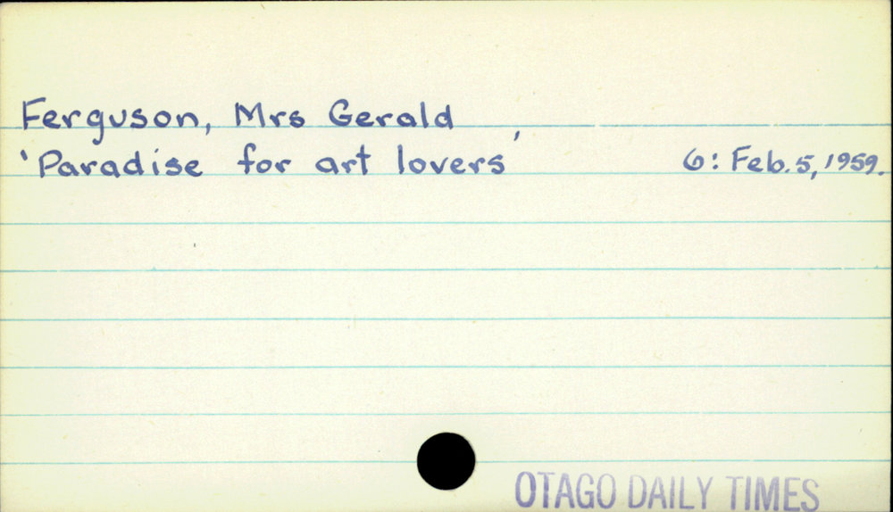 Dunedin Public Libraries (28th Nov 2019). Ferguson, Mrs Gerald. In Website Dunedin Public Libraries. Retrieved 27th Mar 2026 10:49, from https://dunedin.recollect.co.nz/nodes/view/131521