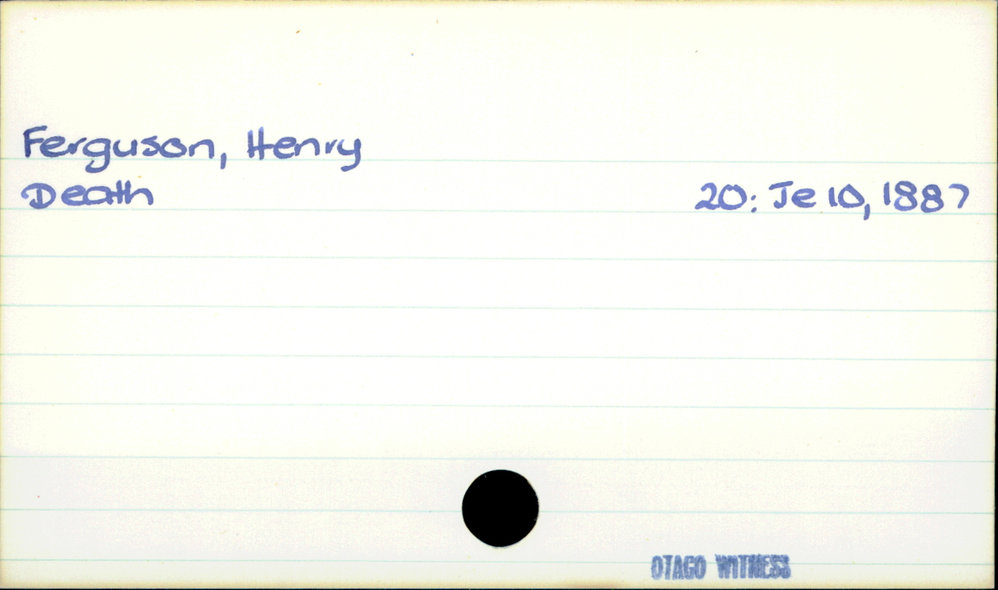 Dunedin Public Libraries (28th Nov 2019). Ferguson, Henry. In Website Dunedin Public Libraries. Retrieved 27th Mar 2026 10:56, from https://dunedin.recollect.co.nz/nodes/view/131525