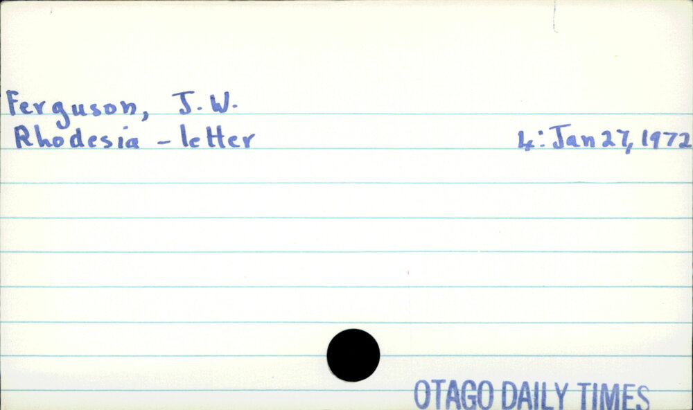 Dunedin Public Libraries (29th Nov 2019). Ferguson, JW. In Website Dunedin Public Libraries. Retrieved 27th Mar 2026 10:49, from https://dunedin.recollect.co.nz/nodes/view/131528