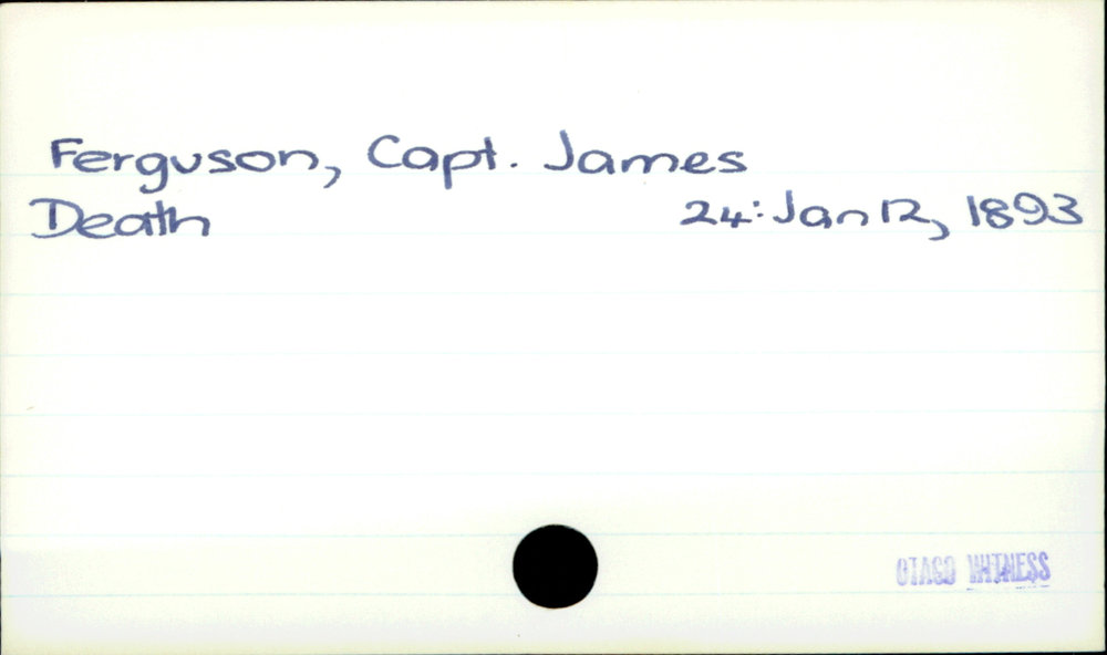 Dunedin Public Libraries (28th Nov 2019). Ferguson, Capt. James. In Website Dunedin Public Libraries. Retrieved 27th Mar 2026 10:56, from https://dunedin.recollect.co.nz/nodes/view/131530
